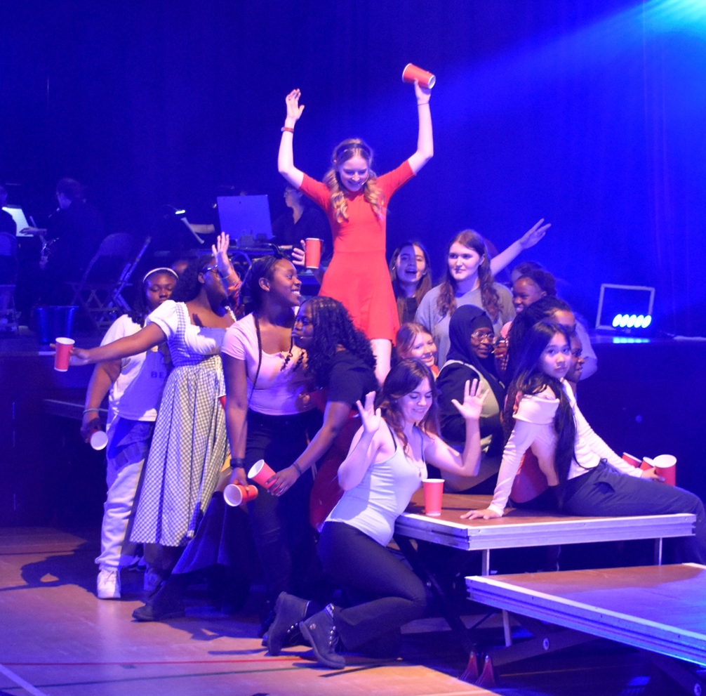 Whole school productions are a significant event in our calendar. They are an opportunity for students across different year groups to enjoy rehearsing and performing together. We encourage as many students as possible to get involved: we regularly have a cast of over 50, on top of a backstage crew, costume and set designers, make-up artists and students in the orchestra. We invite local primary schools to watch our final rehearsal and enjoy large and supportive audiences.